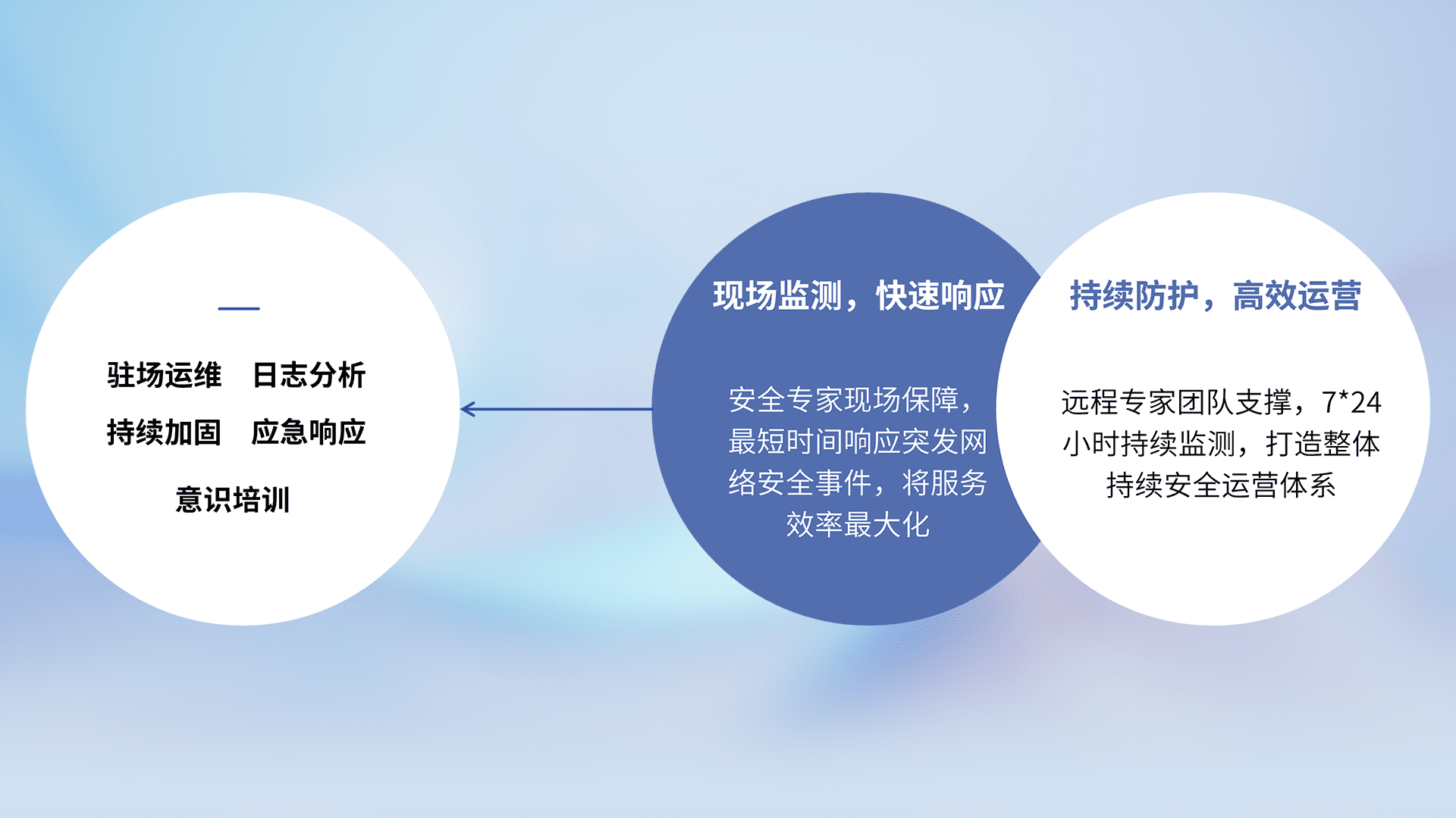 7X24小时持续监测安全事件,保持安全策略有效性,降低资产脆弱性风险,,精准拦截黑客攻击,,,,减少被黑客利用的机会,,,,第一时间遏制,,,,降低损失。。。。